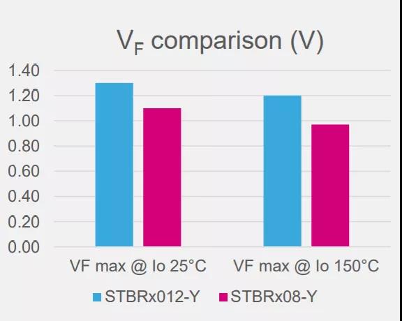 STBR 800V系列的電氣性能符合AEC-Q101,不僅擁有出色的性能表現,同時器件本身也更為耐用且更為安全。除了上述提到的性能提升,STBR 800V系列還擁有超低的泄漏電流表現,其VRRM在-40至+175℃的溫度范圍內均有效,VRSM能夠保證高達1500V。此外,STBR 800V系列能夠減少傳導損耗,降低反向損失,與SCR關聯時能夠限制浪涌電流,提升器件高質量的組合性能。